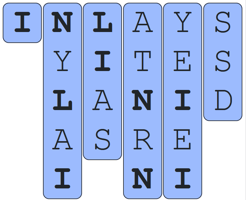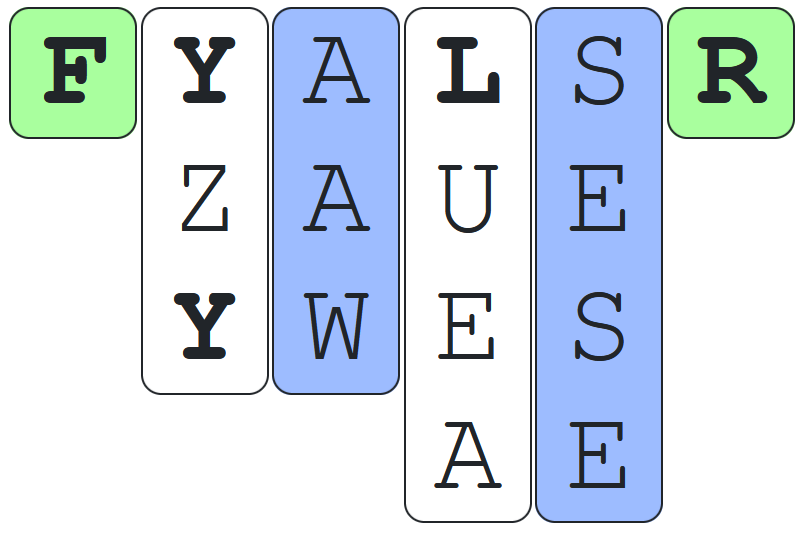 The columns can be one of three colors: white, blue or green. Some of the letters in the columns may also be bolded.
