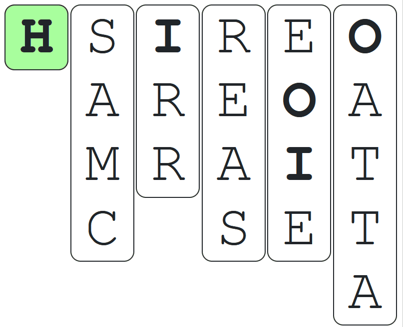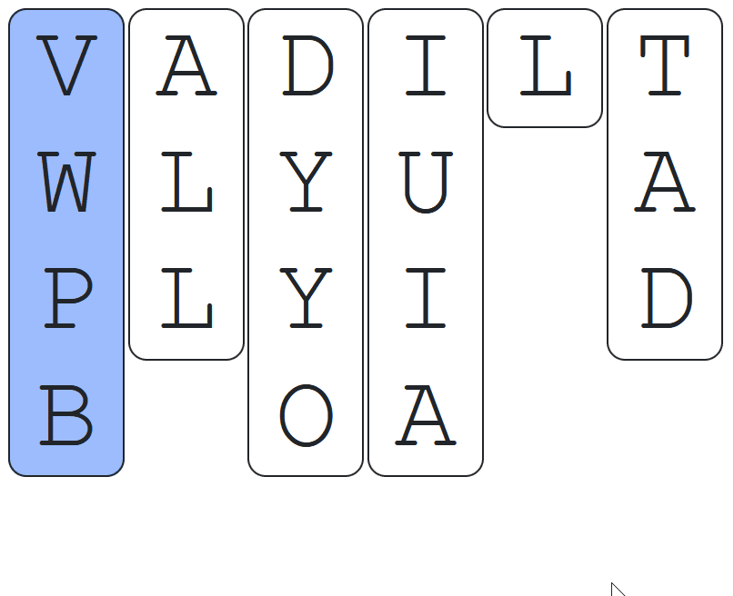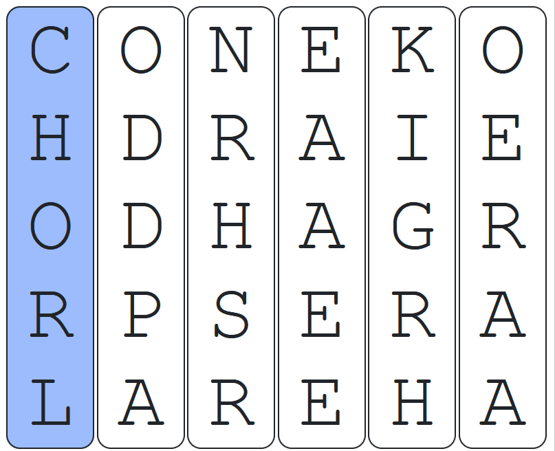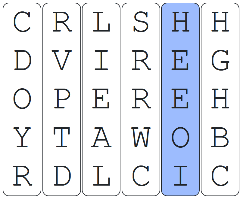If the correct letter appears at the top of an incorrect column, the column will swap with the correct column and it will reduce down to a single green letter.