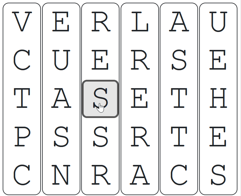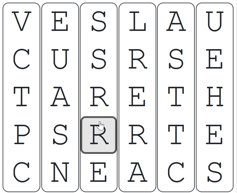 If the second touch/click happens on the same column but different letter, the letters in the column will rotate.
